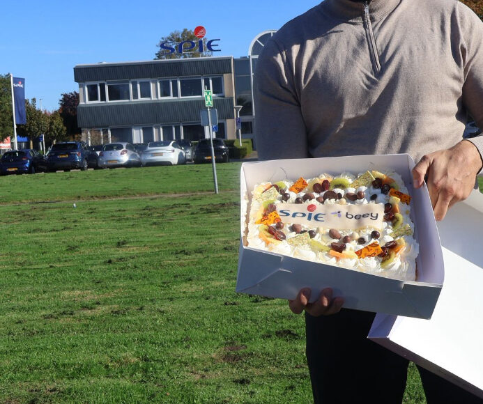 De medewerkers van Beey hebben een belangrijke bijdrage geleverd aan meerdere succesvolle projecten van Spie Nederland. Deze fijne samenwerking werd vorige week gevierd met een heerlijke taart en een kopkoffie op het kantoor van Spie Nederland.